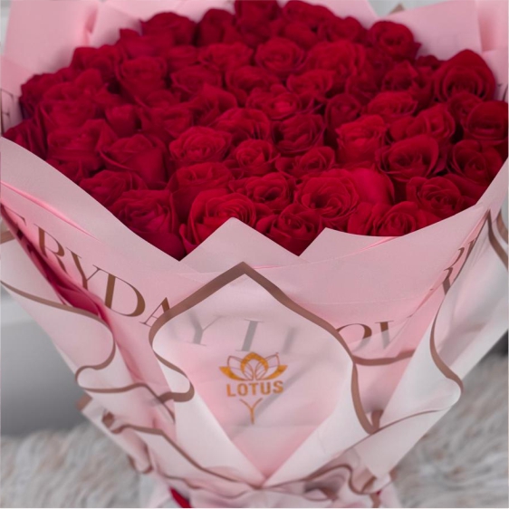 Cada rosa es seleccionada cuidadosamente para garantizar su frescura, color intenso y durabilidad, formando un ramo espectacular que destaca por su envoltorio coreano de tendencia internacional.