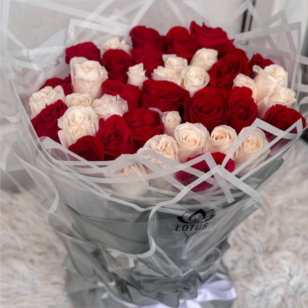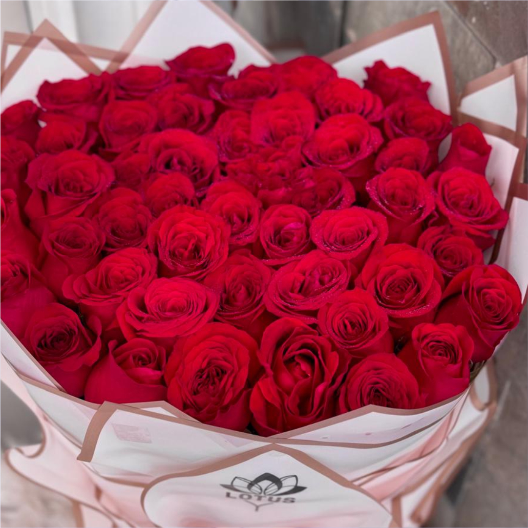 Cada rosa es seleccionada cuidadosamente para garantizar su frescura, color intenso y durabilidad, formando un ramo espectacular que destaca por su envoltorio coreano de tendencia internacional.